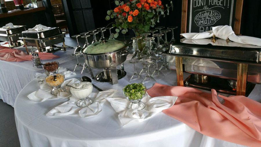 - Mashed Potato Martini bar with bacon, cheese, sour cream, green
